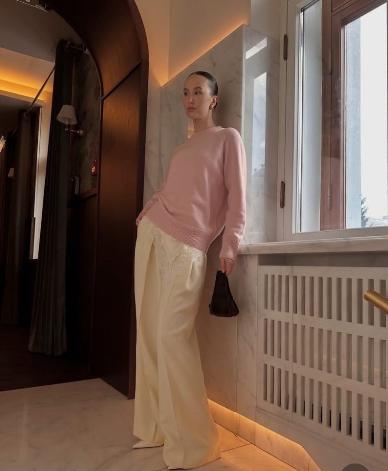 Свобода без потери элегантности — вот их главная фишка. И такие бренды, как Max Mara, Chloe, Hermes сделали их ДНК бренда. Палаццо с высокой посадкой и защипами у пояса визуально удлиняют силуэт, подчеркивают талию и скрывают любые нюансы фигуры. Ткань — струящаяся вискоза или мягкая смесовая — не липнет, дышит и создает красивые складки при ходьбе. Носите с кроссовками для street-style или с ботинками и жакетом для городского выхода.