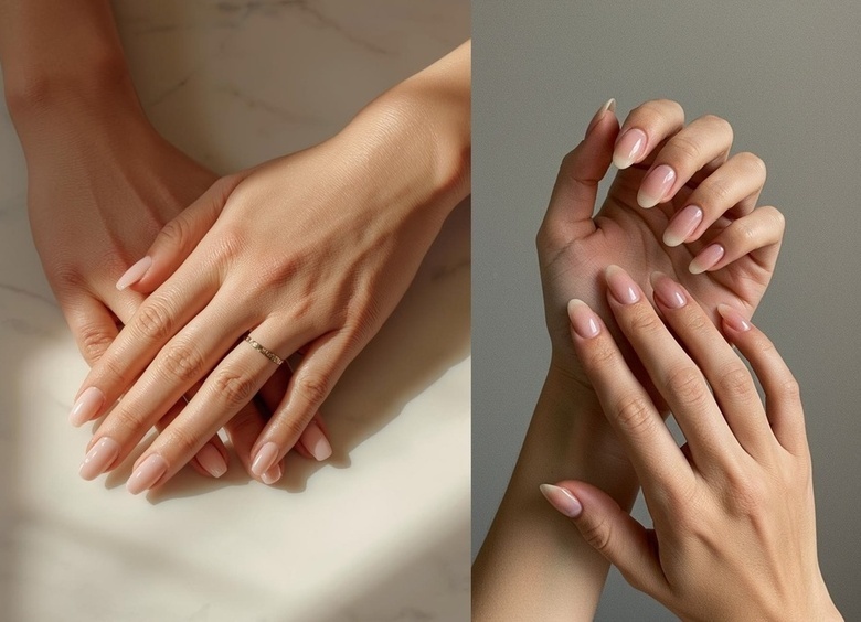 Чтобы сохранить эффект удлинения пальцев, важно обращать внимание не только на форму и цвет, но и на дизайн. Слишком яркие или неоновые лаки создают сильный визуальный акцент, который привлекает внимание к ногтям и делает пальцы короче. «Аналогичный эффект возникает при использовании чрезмерно широкой или сильно изогнутой формы ногтя — она зрительно „съедает“ длину и делает пальцы массивнее», — говорит Полина.Также стоит аккуратно подходить к декоративным элементам. Крупные рисунки, обильные стразы, объемный декор или широкие полосы френча перегружают ногтевую пластину и отвлекают взгляд от естественной линии пальца. В результате маникюр выглядит тяжелым, и даже длинные пальцы могут казаться короче.